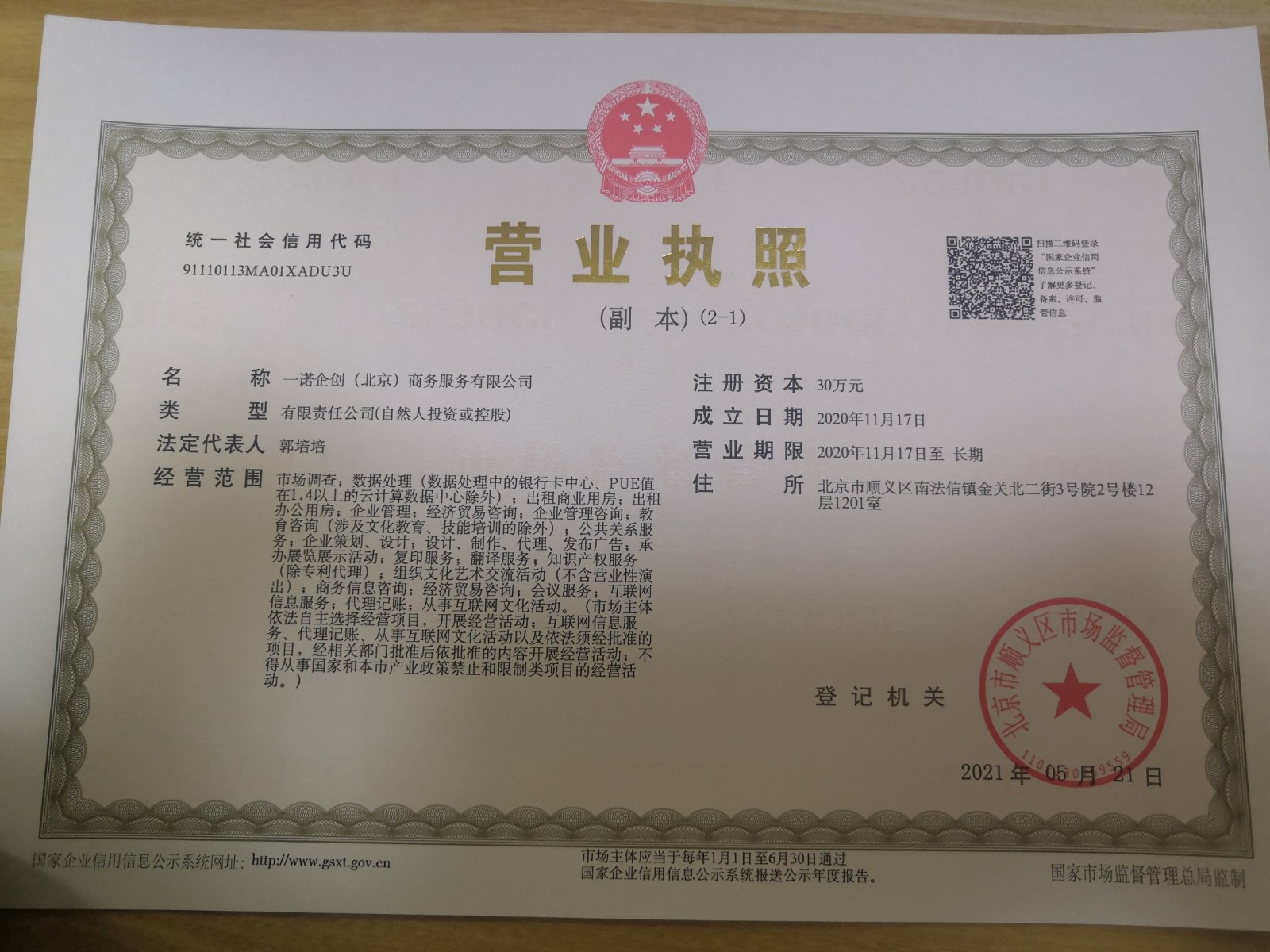 一诺企创北京商务有限公司
