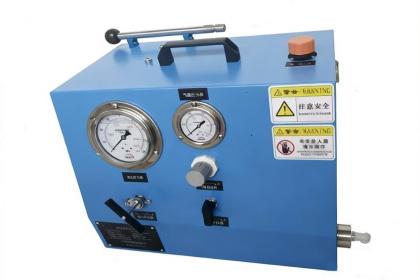 3、选用特有的手柄加压装置,可实际手动气动两用操作方式,没有空气气源作驱动的场合下,可利用手柄加压装置较控制输出压力大小,适用压力范围为0Mpa到100Mpa之间。